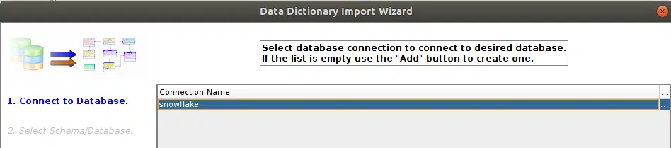 To do that, select File → Import → Data Dictionary from the menu and choose the jdbc connection to Snowflake (to learn how to connect see https://kentgraziano.com/2015/11/20/tech-tip-connect-to-snowflake-db-using-sqldevmodeler/).